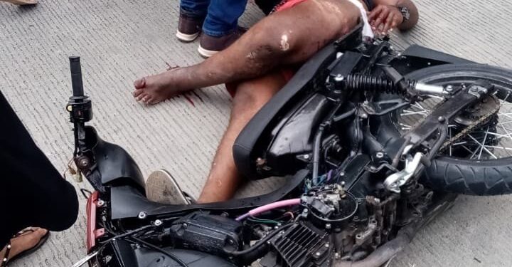 Peligroso accidente de motociclista en la tarde del pasado martes 14 de abril, por exceso de velocidad en la vía a San Luis, a la altura de Provigas.