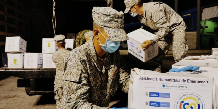¡Con el #CorazonAzuLado, hoy más unidos que nunca! En medio de un trabajo interinstitucional, liderado por el Ministerio del Interior y apoyado por el Comando Específico de San Andrés y Providencia y sus componentes de la Armada de Colombia, Fuerza Aérea Colombiana, Ejército Nacional, así como la Policía Nacional, Unidad para la Gestión del Riesgo de Desastres y Cruz Roja, arribaron a la isla de San Andrés más de 7 toneladas de ayudas humanitarias, consistentes en 400 mercados que serán entregados a la población isleña y raizal de #SanAndrésIsla.