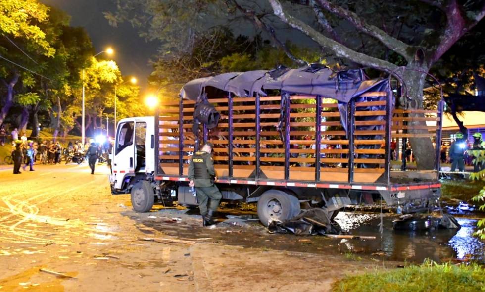El camión explotó y lesionó a diez policías que ya fueron evacuados de la zona y que permanecen en tres clínicas de la ciudad: Clínica Colombia, Clínica Valle del Lili y Clínica Limonar.