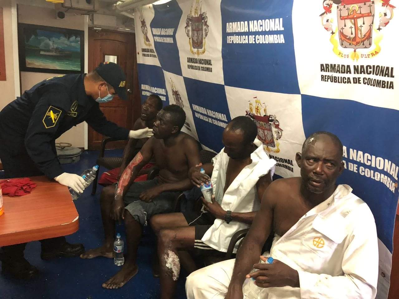 Tras horas de búsqueda, fueron encontradas las 28 personas, de las cuales cinco presentan quemaduras de primer y segundo grado en extremidades, así como síntomas de deshidratación. A esta hora se encuentran recibiendo primeros auxilios a bordo del buque ARC “San Andrés”.