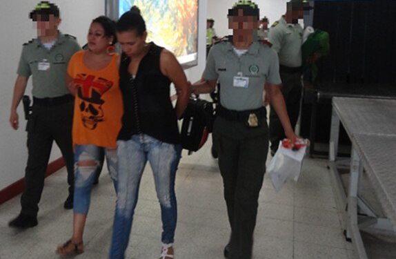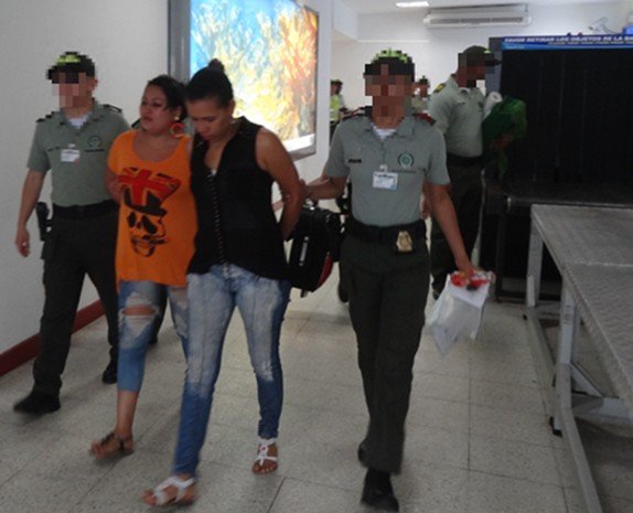 Dos mujeres fueron capturadas con mil gramos de marihuana adheridos a su cuerpo en sus nalgas. Como Jessica Lorena Mejía Gómez y Jennifer Fernández Reina, fueron identificadas las mujeres capturadas por la Policía Nacional en un operativo de control que se realizó en la tarde del martes en las instalaciones del aeropuerto Internacional Gustavo Rojas Pinilla. La captura de estas damas se produce cuando intentaban ingresar a la isla cada una con 500 gramos de marihuana adheridos a su cuerpo, en la modalidad de prótesis superficiales en los glúteos.