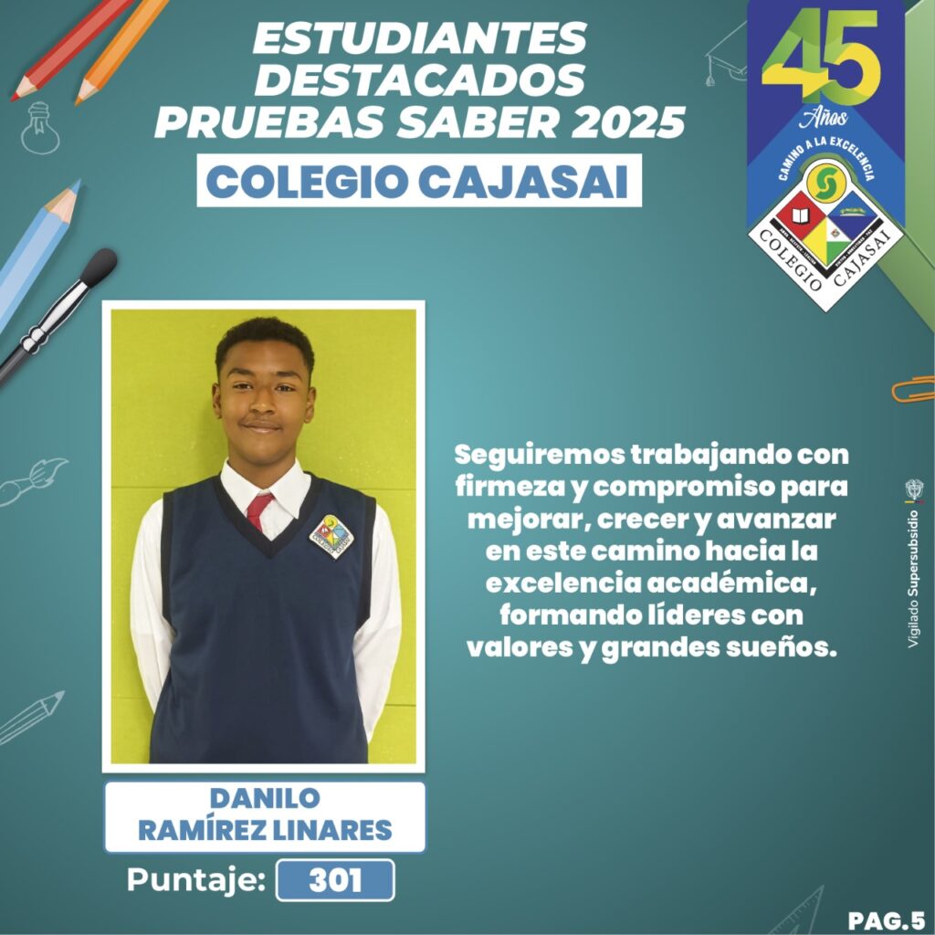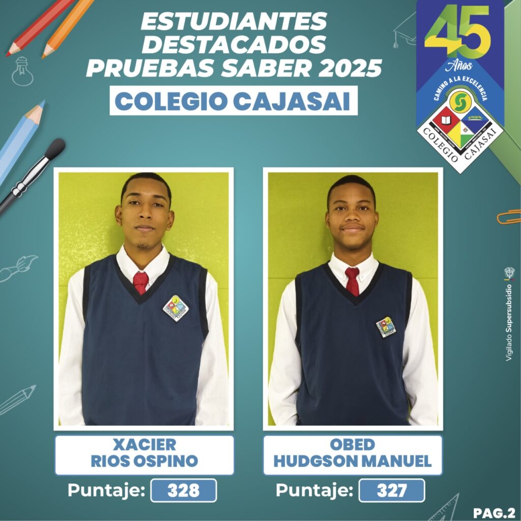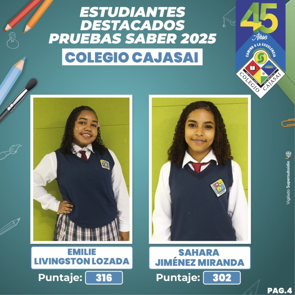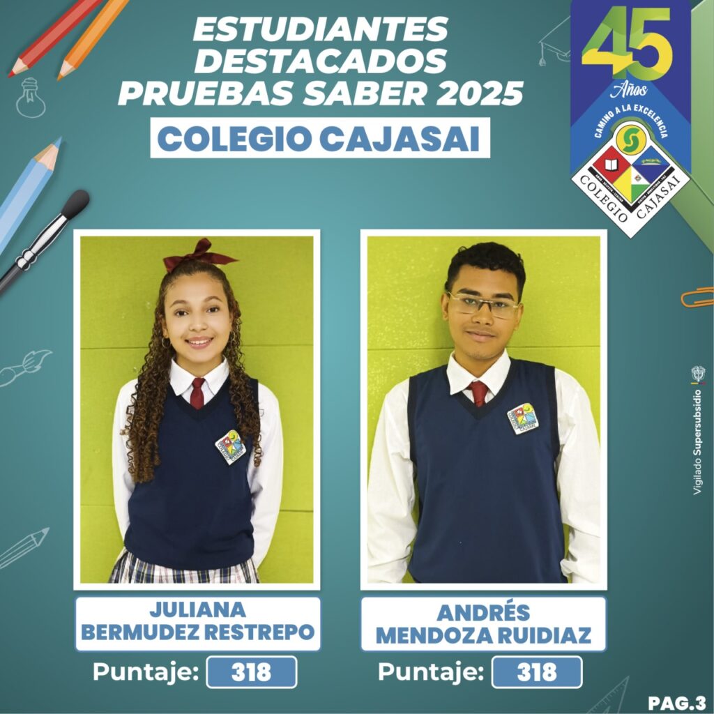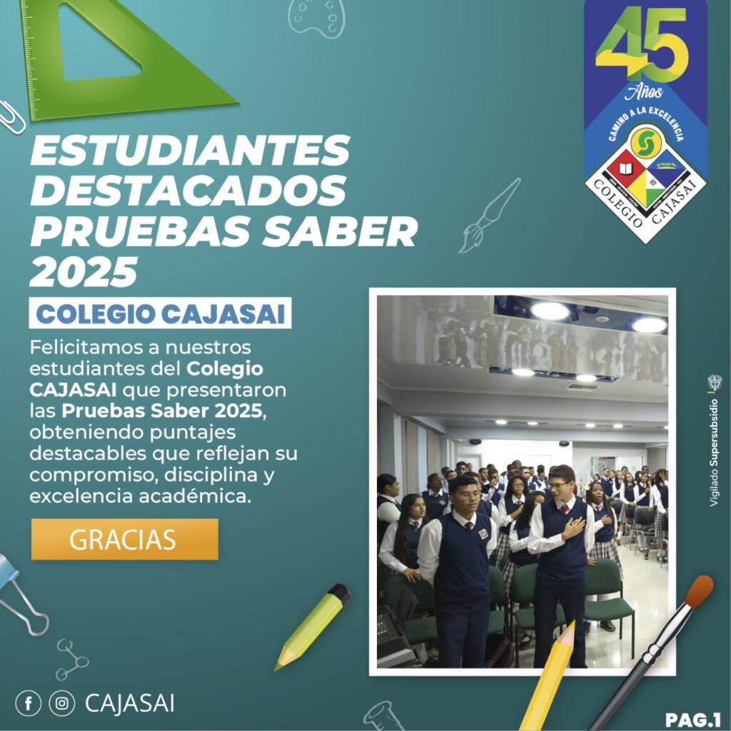 Felicitamos a nuestros estudiantes del Colegio CAJASAI que presentaron las Pruebas Saber 2025, obteniendo puntajes destacables que reflejan su compromiso, disciplina y excelencia académica.
