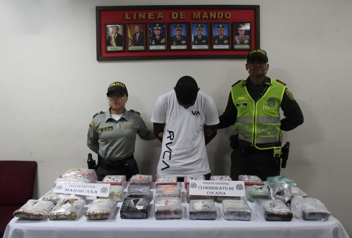En el marco ’Plan de Choque’, Navidad Segura’, Más cerca del ciudadano,’ Policiales adscritos a la Estación de Policía Aeropuerto ‘Gustavo Rojas Pinilla, logran la captura de Dairo Leal Hurtado, ciudadano natural de la isla, quien pretendía ingresar a la isla 24 kilogramos de clorhidrato de cocaína y seis kilos más de marihuana distribuidos en 26 alijos embalados de forma rectangular.