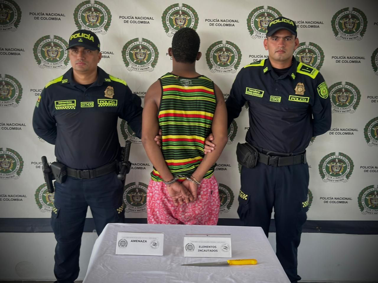 La Policía Nacional informa que personal adscrito al Modelo de Servicio de Policía Orientado a las Personas y Territorios del Departamento de San Andrés, en atención a un motivo de policía en el sector de la Y del Bolivariano, logró la captura en flagrancia de un ciudadano por el delito de intimidación o amenaza y daño en bien ajeno.