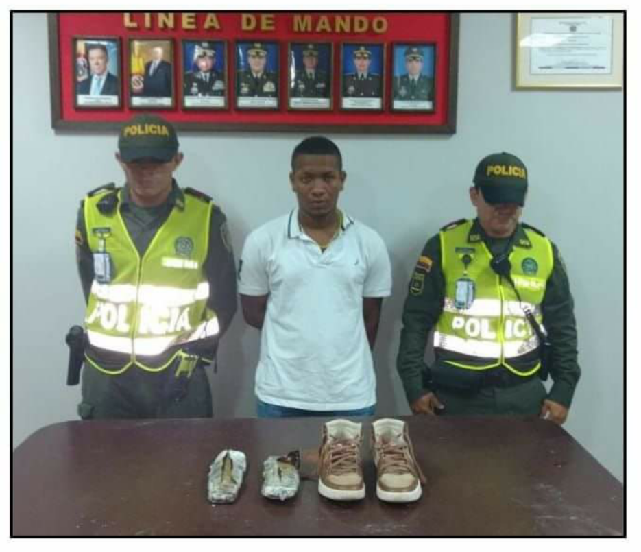 Como NÉSTOR ORLANDO GARCÍA CORREA, fue identificado el detenido que camufló ingeniosamente la sustancia en forma de plantilla para zapatos, con el fin de burlar los controles policiales. No contó con la astucia de los uniformados que luego de detectar el alucinógeno, lo dejaron a disposición de la autoridad competente por el delito de tráfico, fabricación o porte de estupefacientes.