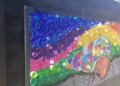 Con materiales reciclables se realizó una obra de arte callejera en mural de la isla