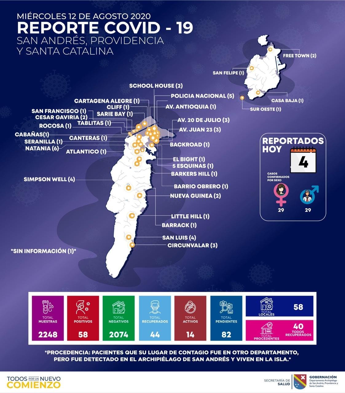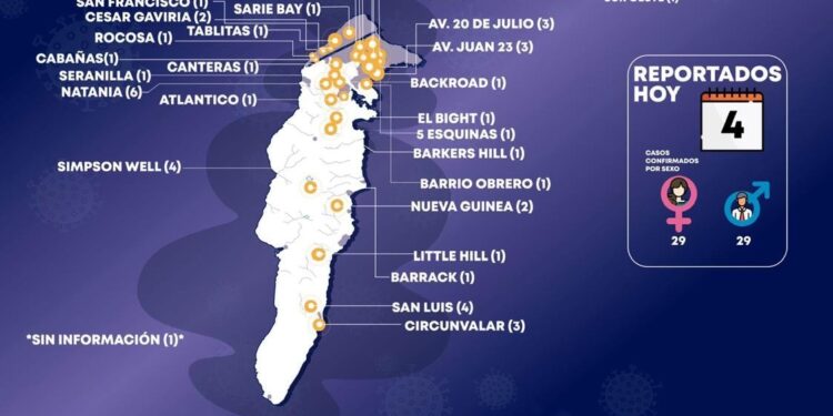 En total hay 32 zonas residenciales de San Andrés y Providencia que hoy día reportan contagios de Covid19 en las islas.