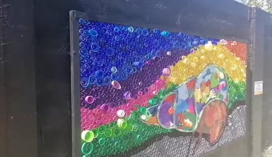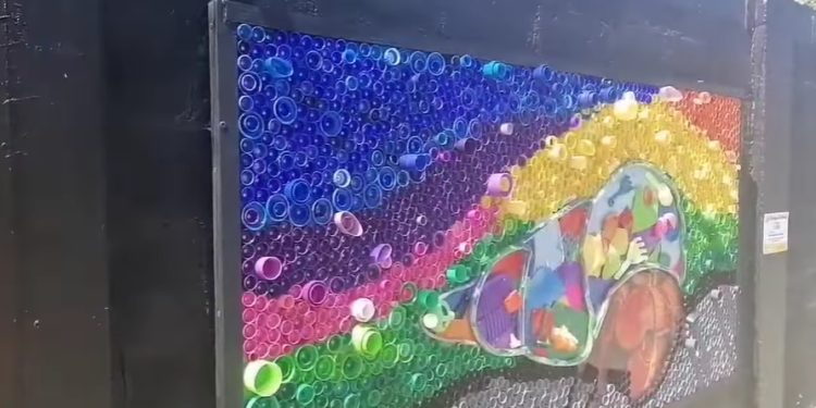 Con materiales reciclables se realizó una obra de arte callejera en mural de la isla