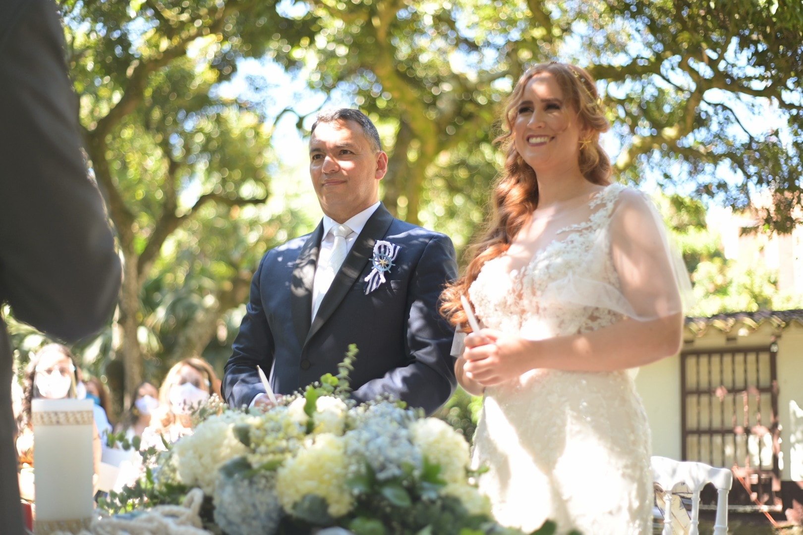 Cumpliendo protocolos de bioseguridad y con el mínimo de personas permitidas en reuniones sociales, familiares y amigos acompañaron a la pareja durante la ceremonia.