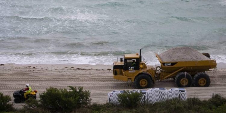 El Cuerpo de Ingenieros del Ejército de Estados Unidos comenzó a verter este mes unos 233.000 metros cúbicos de arena para rellenar hasta junio.