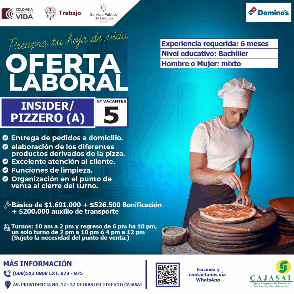 Ofertas laborales del sector hotelero, comercial y de servicios para el Archipiélago de San Andrés, Providencia y Santa Catalina.