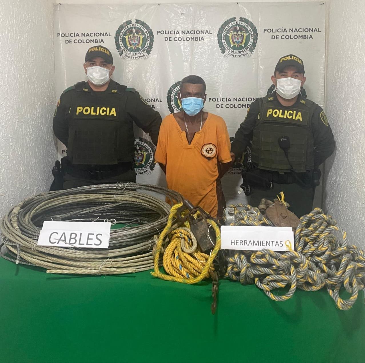 El sujeto identificado como Luis Alberto Polo fue detenido con 150 metros de cable de aluminio para realizar una conexión ilegal y antitécnica en el sector turístico.