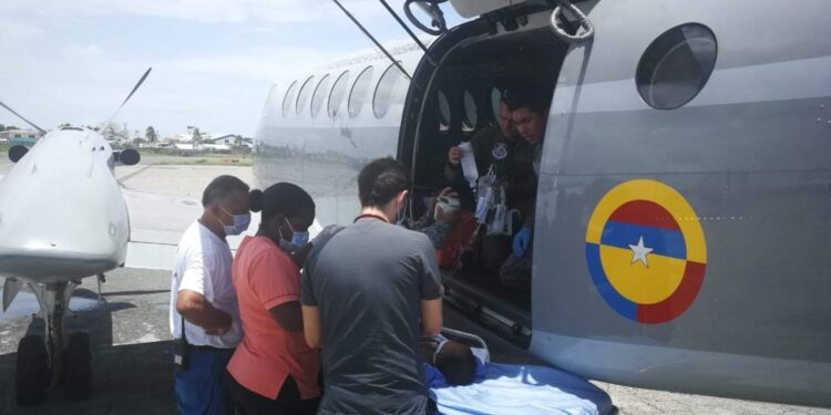 La Fuerza Aérea Colombiana en las últimas horas a través de un avión King Air 350, trasladó en la ruta San Andrés – Barranquilla a un niño de 14 meses de edad en compañía de su madre, quien padece una patología respiratoria, requiriendo atención médica especializada por neumología y manejo en unidad de cuidados intensivos pediátricos.