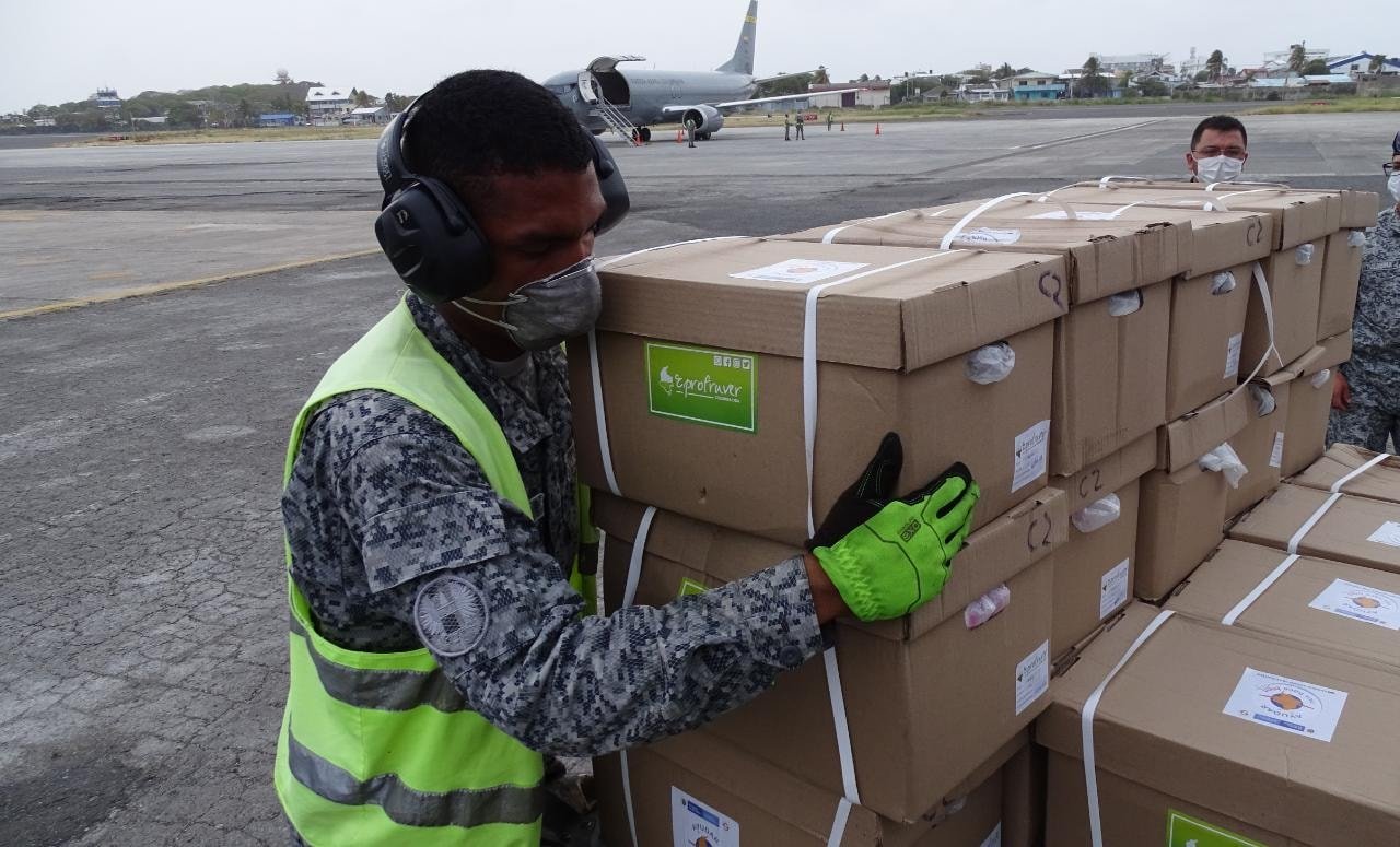 El Grupo Aéreo del Caribe con su personal militar y civil, ha realizado la logística necesaria para recibir las aeronaves de carga que llegan a la Isla de San Andrés con kits de alimentos, aseo y útiles escolares, con el fin de distribuir junto con las Fuerzas Militares, Policía Nacional, Gobierno Departamental y municipal de Providencia las ayudas humanitarias para la comunidad del Archipiélago que más lo necesite.
