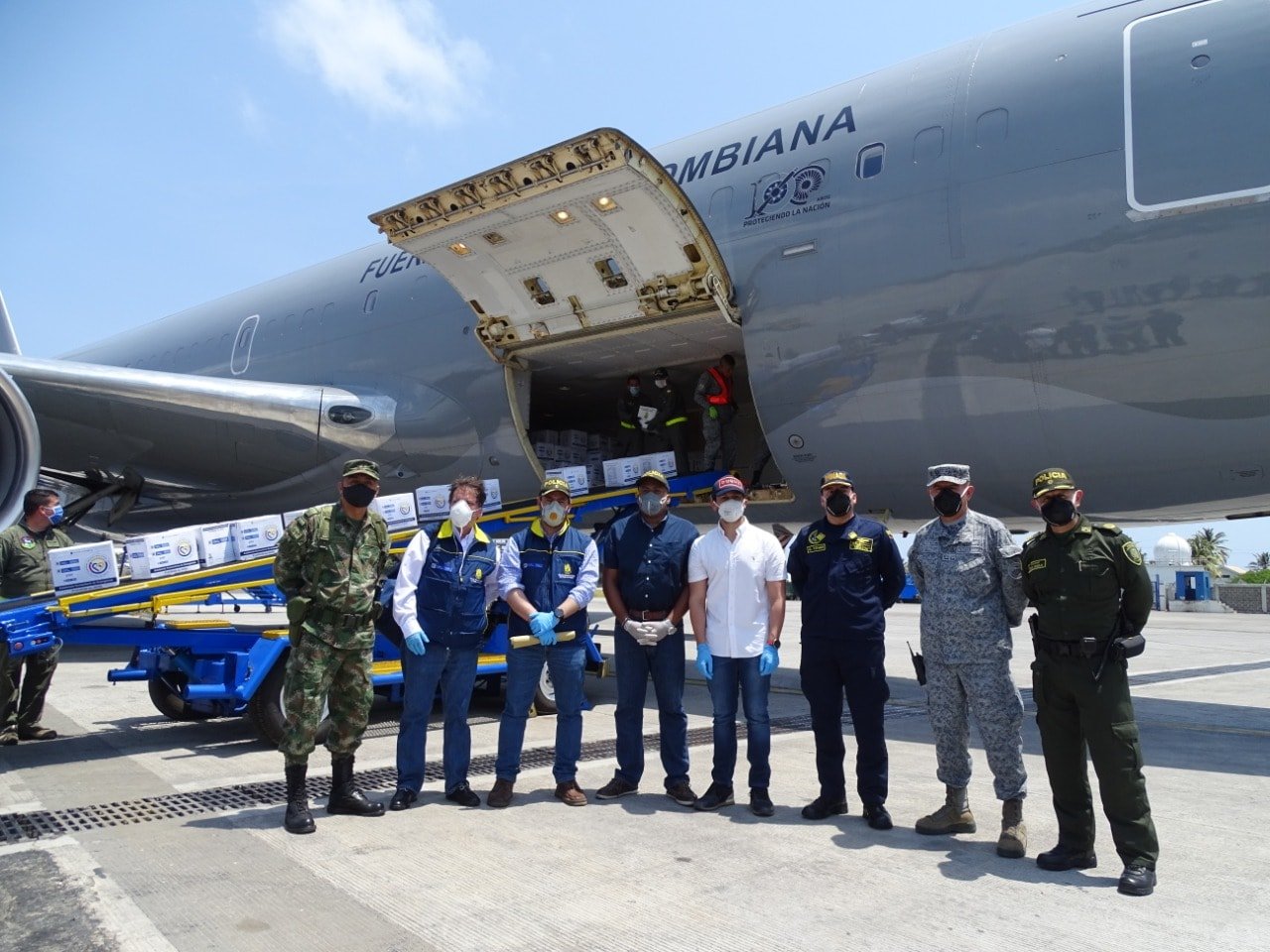 En dicho vuelo humanitario, llegó la delegación presidencial encabezada por el Viceministro de Defensa, Jairo García Guerrero, el viceministro del Interior, Daniel Andrés Palacio Martínez, el director de la Unidad de Gestión del Riesgo de Desastres Manuel José González, quienes se encargarán junto con otras entidades estatales y Policía Nacional en la distribución de los mercados.