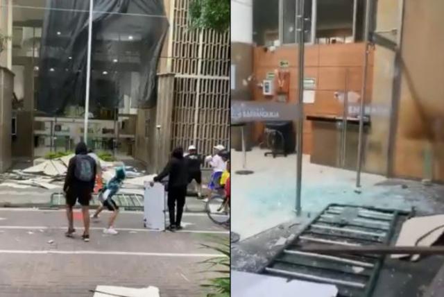 MANIFESTANTES EN BARRANQUILLA ATACARON INSTALACIONES DE LA ALCALDÍA. ONCE PERSONAS FUERON CONDUCIDOS POR LA POLICIA A LA FISCALIA El alcalde Jaime Pumarejo rechazó el ataque contra la fachada de la Alcaldía Distrital perpetrado por vándalos en la tarde de este miércoles, después del cual se identificó y condujo a 11 personas ante las autoridades competentes. El mandatario recordó que la protesta pacífica es bienvenida, pero que no se tolerarán actos de vandalismo.