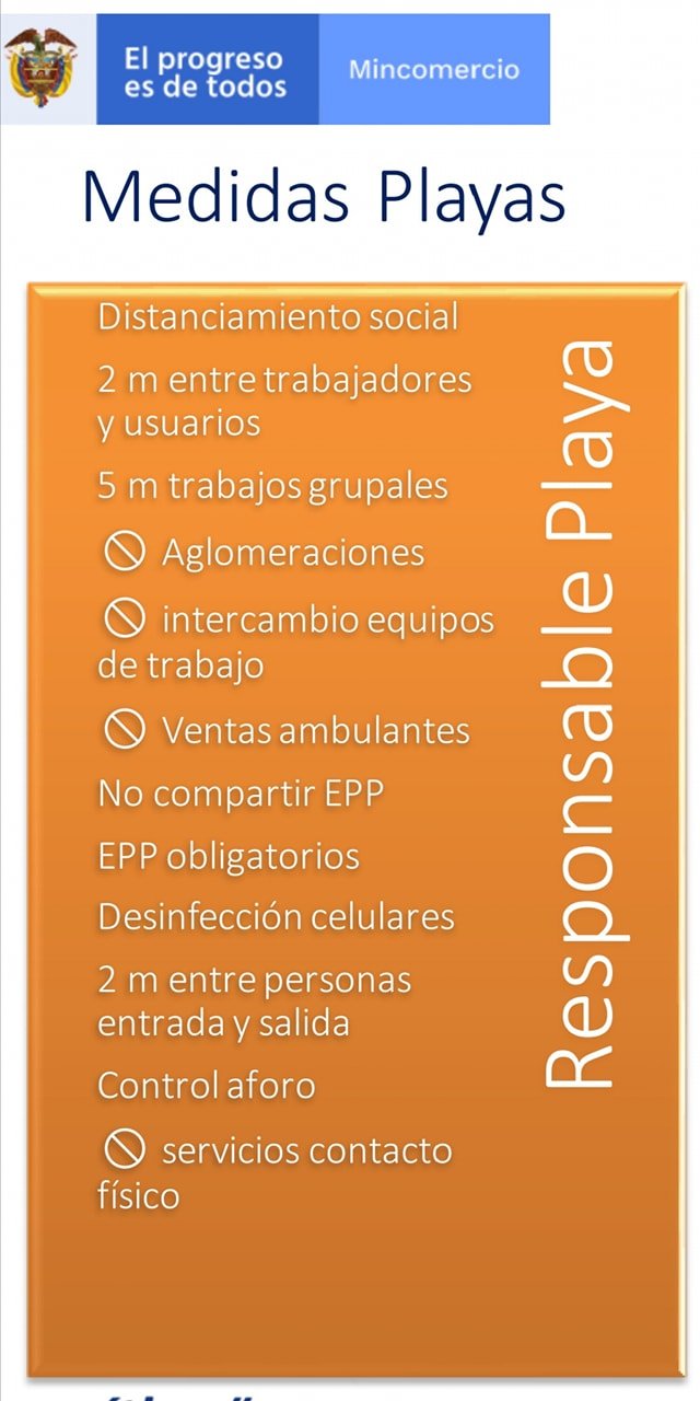 En las últimas horas trascendieron algunas de las medidas de playa y protocolos de bioseguridad elaboradas por la Dirección General Marítima, Dimar, las cuales requerirán de mayor socialización y explicación para una mejor comprensión de la comunidad.