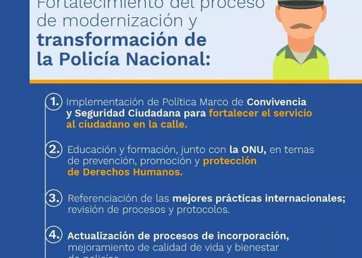 Sobre el quinto eje, Fortalecimiento Tecnológico, dijo que es transversal a todo el fortalecimiento de la Policía Nacional, por lo cual “se mejorará el acceso de información para permitir la interacción con el ciudadano. Esto también significa que las autoridades administrativas doten a la institución de herramientas tecnológicas que permitan el acompañamiento del servicio”.