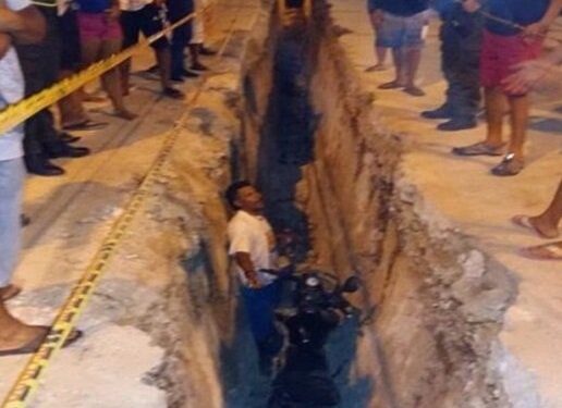 De manera sagaz ocupantes saltaron antes de caer y se aferraron a paredes del abismo. Un joven motociclista y su compañera se salvaron de caer en los huecos que se vienen perforando para enterrar el alcantarillado de la carrera trece de ésta isla, gracias a la agilidad de los tripulantes que pudieron saltar antes del accidente.
