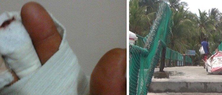 El pasado viernes 22 de agosto cuando un prestador de servicio se encontraba en el embarque de una lancha para el regreso a la isla de San Andrés más conocido como Fernando por todos sus compañeros, su mano fue golpeada por la lancha enredándose su dedo con la cuerda de amarre de la embarcación, perdiendo una falange de su dedo medio.