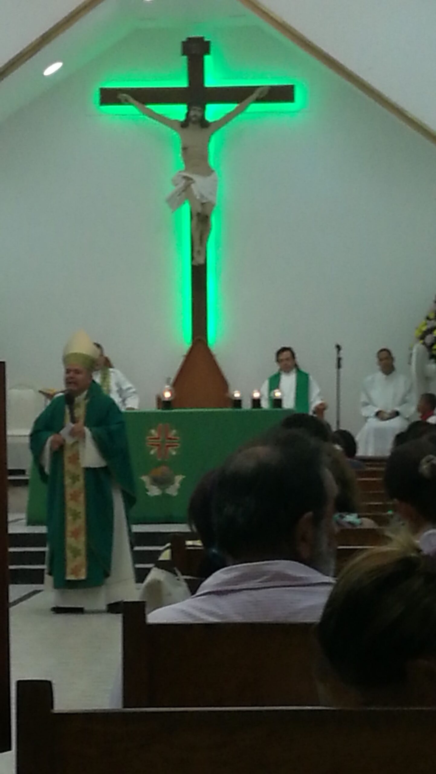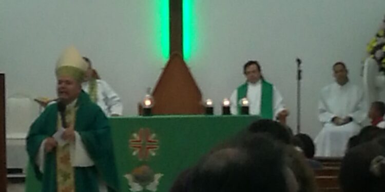 Monseñor Jaime Uriel Sanabria, obispo y Vicario Apostólico de San Andres y Providencia se presentó este domingo en la iglesia católica Cristo Salvador del sector Hansa, por primera vez desde su nombramiento por el Papa Francisco y su posesión en el cargo que oficia en la iglesia Catedral Sagrada Familia.