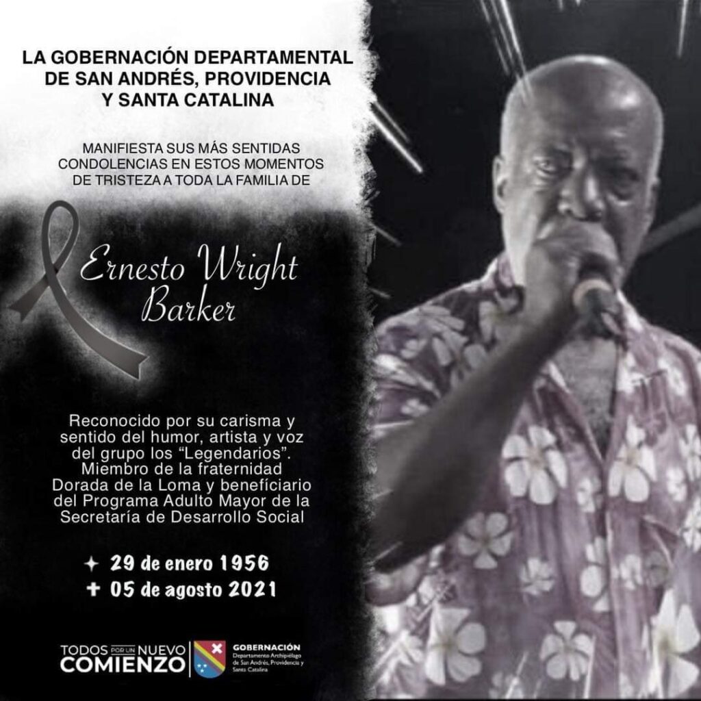 Desde la Gobernación del Departamento Archipiélago lamentamos el fallecimiento del señor Ernesto Wright Barker. Fallecido el pasado 5 de agosto.