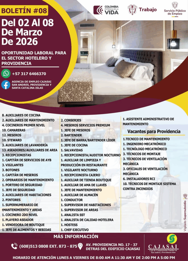 #LaUnidadNosAcercaAlTrabajo #agenciadeempleo #ofertadeempleo #trabajo #TrabajoSiHay #sanandres #providencia #providence #SantaCatalina