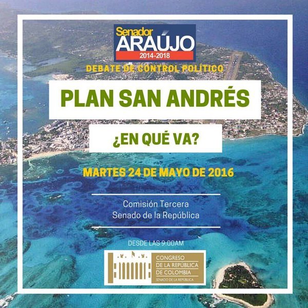 Explicó Araújo que el Plan San Andrés no tuvo en cuenta el principal problema de la isla que es la poca cobertura de agua potable y que espera que como resultado del debate el Gobierno inicie los obras para que el Archipiélago, en su totalidad, tenga el servicio sin que sus habitantes tengan que pagar $1.600.000 como está contemplado actualmente, “el Gobierno dice que en agosto va a estar listo el plan maestro, pero este Plan está desde el 2013 y no se hizo absolutamente nada”, dijo.