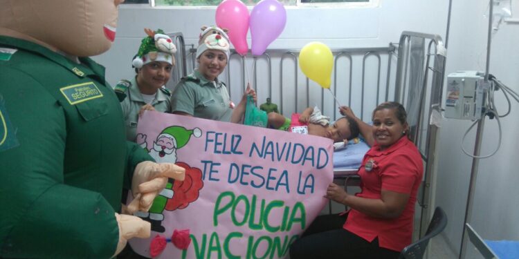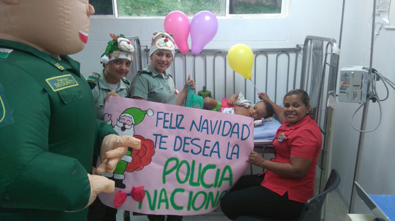 La alegría de la Navidad también llegó a la Sede Clarence Lynd Newball Memorial Hospital, donde integrantes de la Policía Nacional llegaron para entregar regalos a los niños que son atendidos allí y sacarles una sonrisa.