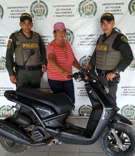 La Policía Nacional le sigue cumpliendo a San Andrés, prueba de ello, es otra motocicleta recuperada. Según los registros, la motocicleta BWS 2 color negra, le fue arrebatada a la señora María De Los Ángeles Espitia Pérez de 65 años de edad,el día 16 de julio de este año alrededor de las 10 de la noche en el sector conocido como “Sarie Bay”. Gracias a la labor de uniformados, fue encontrada y devuelta a su propietaria.
