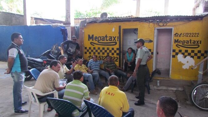 Las instalaciones de la empresa Mega-taxi fue el escenario para que uniformados de la Policía Nacional adscritos al grupo de prevención y educación ciudadana y el gremio de taxistas de las islas, coordinaran la implementación e instalación del Botón del pánico, el cual es una medida preventiva de seguridad que ayuda a la autoprotección de los taxistas.