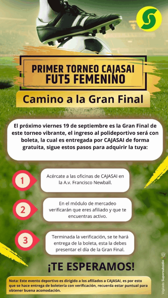 Afiliado a CAJASAI, el próximo viernes se llevará a cabo la Gran final de este vibrante torneo, que nos has llenado emoción juego tras juego, el ingreso al polideportivo será con boletería.