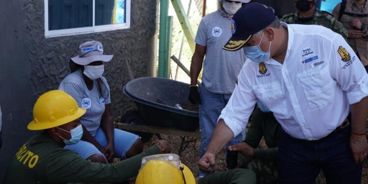 Providencia, 17 de enero de 2021. MADS.- El presidente Iván Duque, en compañía del Ministro de Ambiente Carlos Correa, la Directora del Instituto Sinchi Luz Marina Mantilla y el Director de la Corporación Coralina Arne Britton, inauguró el primer vivero para producción de material vegetal, que permitirá la restauración de la vegetación de las islas de Providencia y Santa Catalina, afectadas por el paso del huracán Iota.