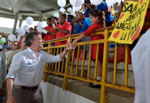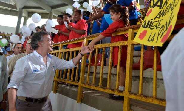 El Presidente de la República, Juan Manuel Santos, estuvo este miércoles en San Andrés, donde encabezó varias reuniones, una de ellas para revisar la marcha del plan de acción integral para el archipiélago, y otra en el barrio San Luis en la que saludó a beneficiarios de los programas del Departamento para la Prosperidad Social y a los cogestores de esa entidad, que llama su “ejército social”. Medio millar de familias sanandresanas recibirán viviendas gratis de aquí al 2017.