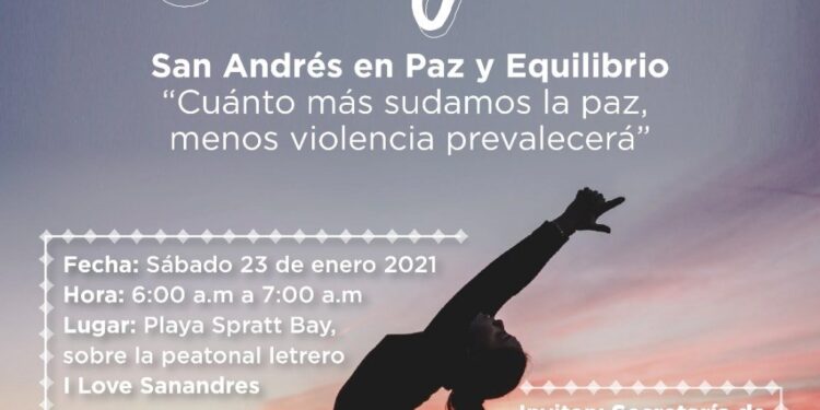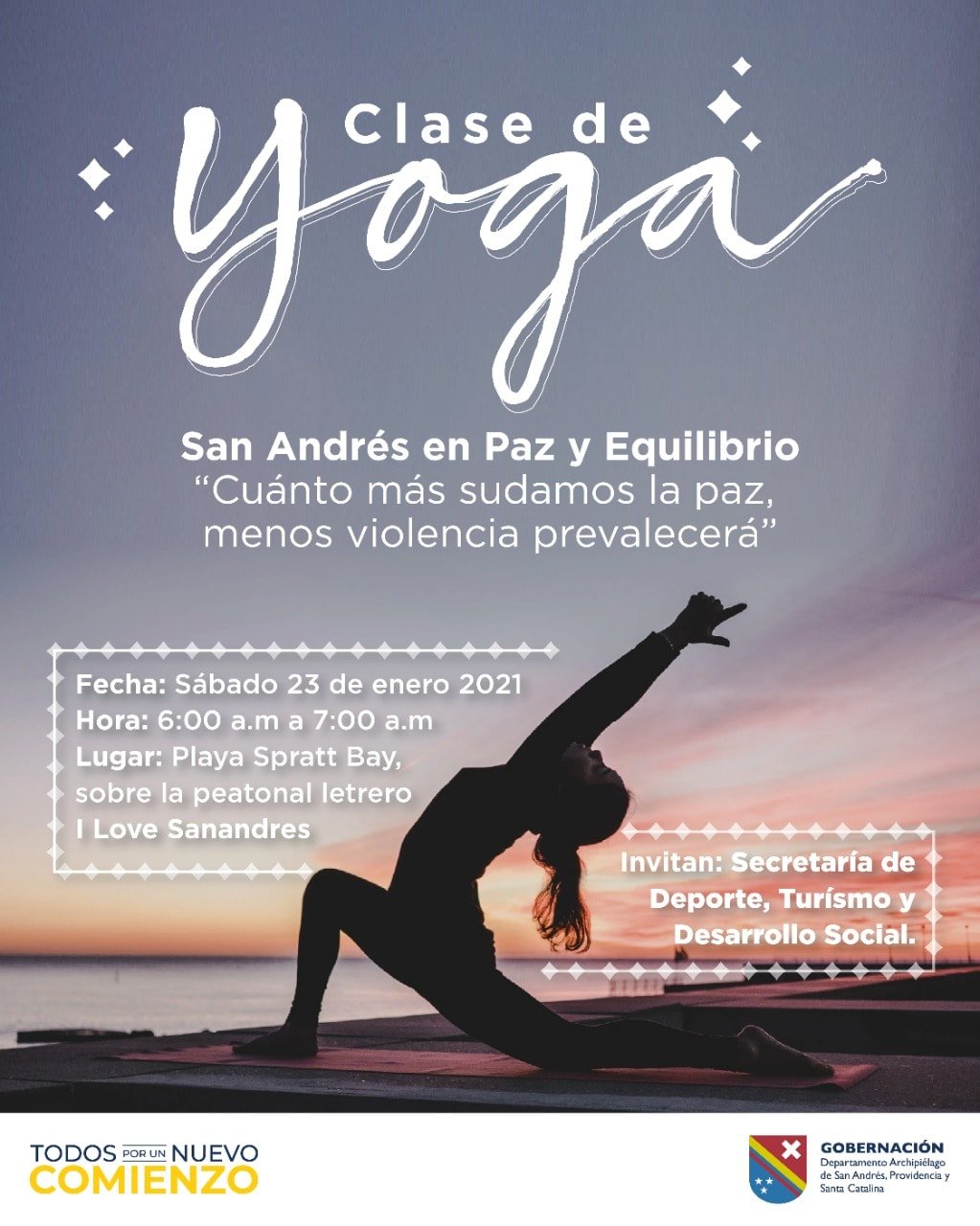 pensando en tu bienestar físico y mental, ha programado la jornada de yoga denominada ‘San Andrés en paz y equilibrio’ que se realizará este sábado 23 de enero en el inicio de la peatonal por el letrero ‘I Love San Andrés’.