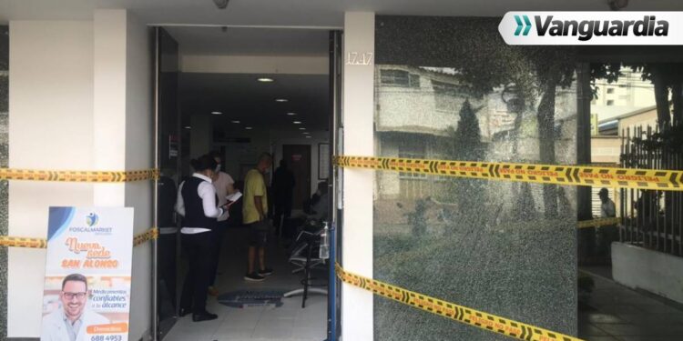 La sede de la Foscal Nueva EPS que fue vandalizada en el barrio San Alonso hoy, 1 de julio, no está prestando sus servicios médicos porque quedó reducida a vidrios rotos y su fachada destruida.
