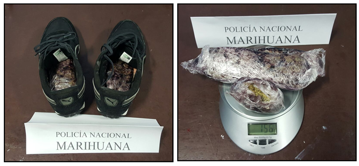 Como Roberto Junior Villa Gómez se identificó el sujeto detenido por unidades adscritas a la Estación de la terminal aérea, cuando este arribaba de un vuelo procedente de la ciudad de Cartagena. Su actitud sospechosa incitó a los uniformados a practicarle un registro, en el que se le hallaron 156 gramos de marihuana camuflados en las plantillas de sus zapatos.