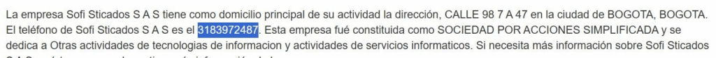 La empresa se llama Sofi Sticados SAS y su representante legal se llama Linda Galvis, y con abonado telefónico número 3183972487.