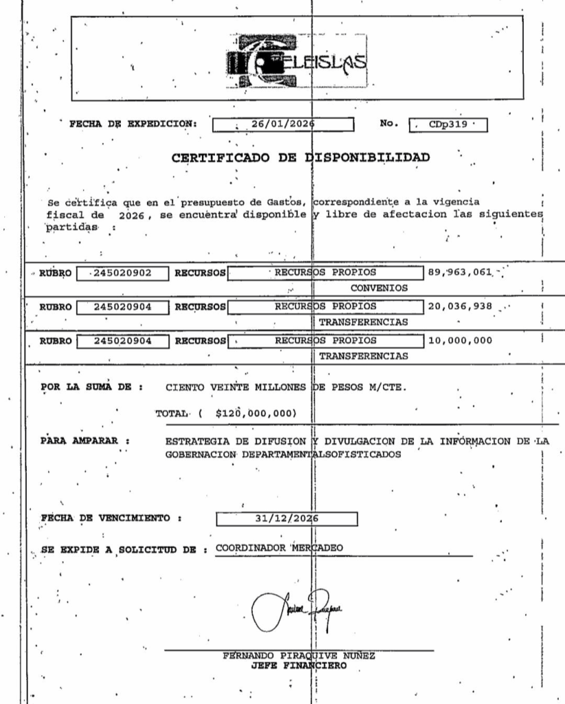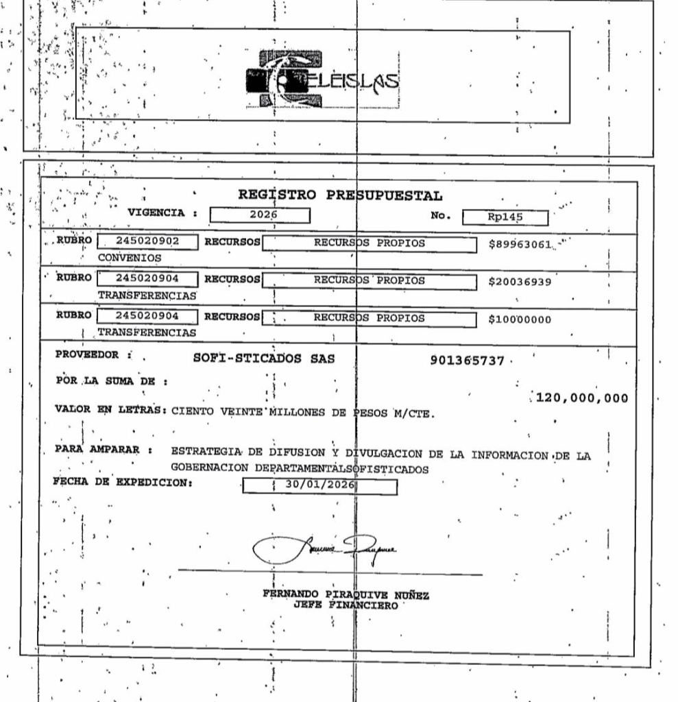 Una empresa o profesional foránea, desconocida, sin el cumplimiento del requisito de la tarjeta de residencia Occre, y promoviendo la fuga de capitales cwlebraron un Contrato de Asesoría del Plan de Medios Gobernación 2026 por 8 meses a razon de 120 millones de pesos, para presentar cobros mensuales de 15 millones de pesos, ll cual ha generado malestar entre muchos periodistas que hacen parte del Plan de Medios con total lealtad hacia el Coral Palace, que han dilapidado su reputación y son señalados de estar «vendidos» a un Gobierno con muy mala reputación.