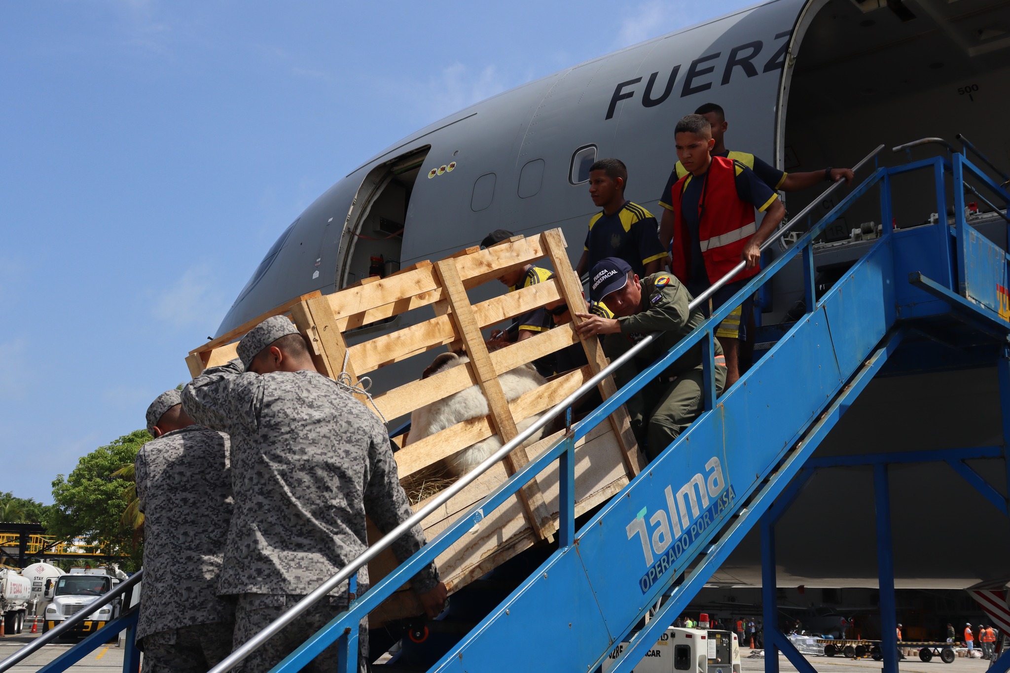 Previo a su transporte, el animal fue sometido al respectivo proceso de cuarentena y cumplió con los requisitos sanitarios exigidos por la autoridad competente para el ingreso a zona libre de fiebre aftosa, garantizando el cumplimiento de la normatividad vigente en materia de sanidad animal. Dicho traslado fue realizado a bordo de una aeronave Boeing 767 de su Fuerza Aeroespacial Colombiana, con capacidades para el transporte de carga, contando con el apoyo logístico del Grupo Aéreo del Caribe, GACAR.
